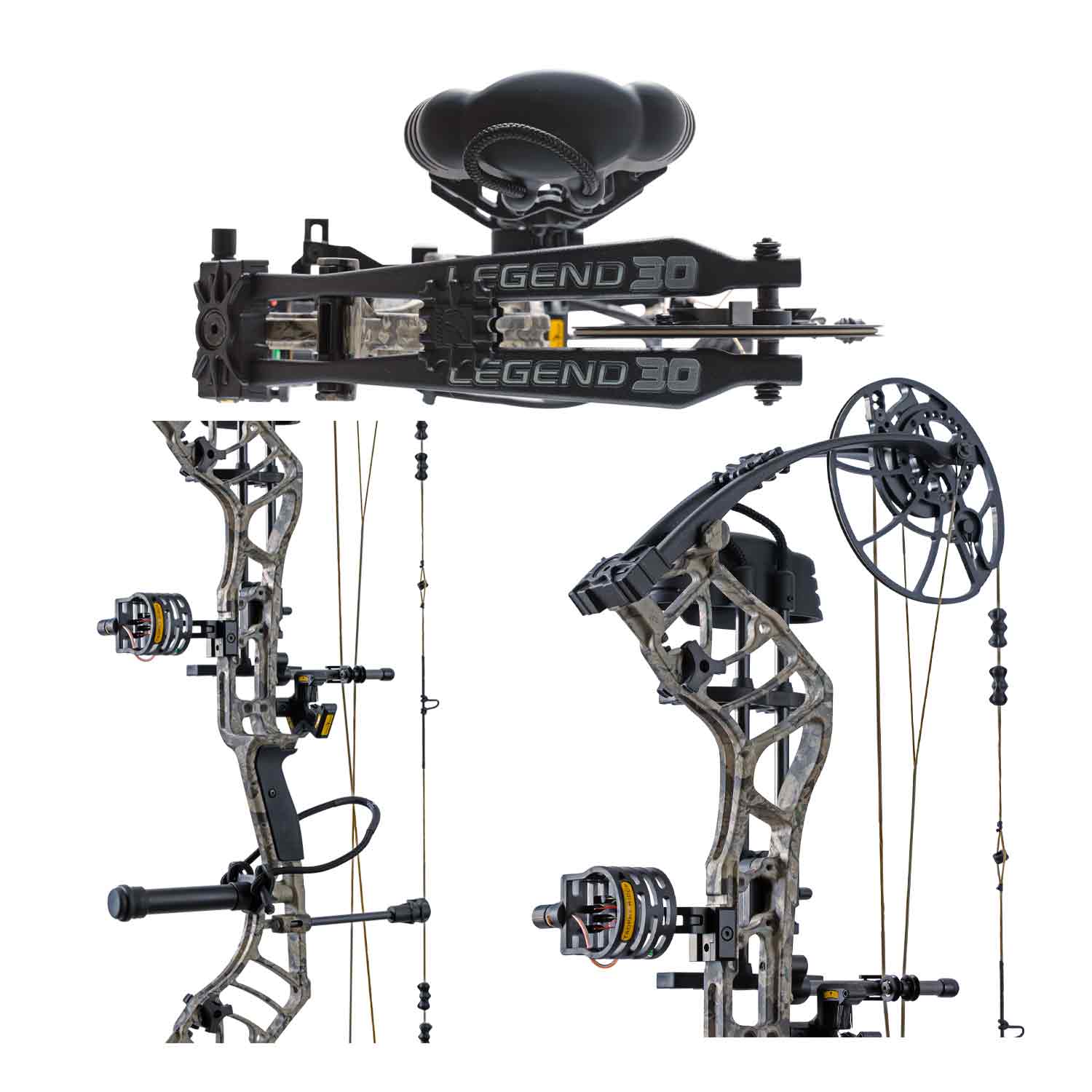 Introducing the Legend 30, a compound bow that redefines precision and versatility in archery technology. This bow features the ultimate Ready-To-Hunt package from Trophy Ridge with an IMS® V-Biscuit rest, a picatinny-mounted 4 pin sight, a 5 arrow quiver, a stabilizer, peep sight, and wrist sling! With its compact 30” axle-to-axle and forgiving 6.37″ brace height, the Legend 30 strikes the perfect balance between maneuverability and forgiveness, making it ideal for every hunting scenario. At the heart of the Legend 30 lies the revolutionary DHC-XR Hybrid Cam. Its exceptional adjustment range allows for customization, with draw lengths ranging from 18″ to 31″. The Legend 30 also features draw adjustable weights from 15 to 70lbs, ensuring a perfect fit for every shooter. The Bear Paw Grip provides comfort and control, while the Cable Roller System ensures smooth, consistent draws with minimal friction. Become a legend in the field with the Legend 30 and experience archery in its smoothest form.