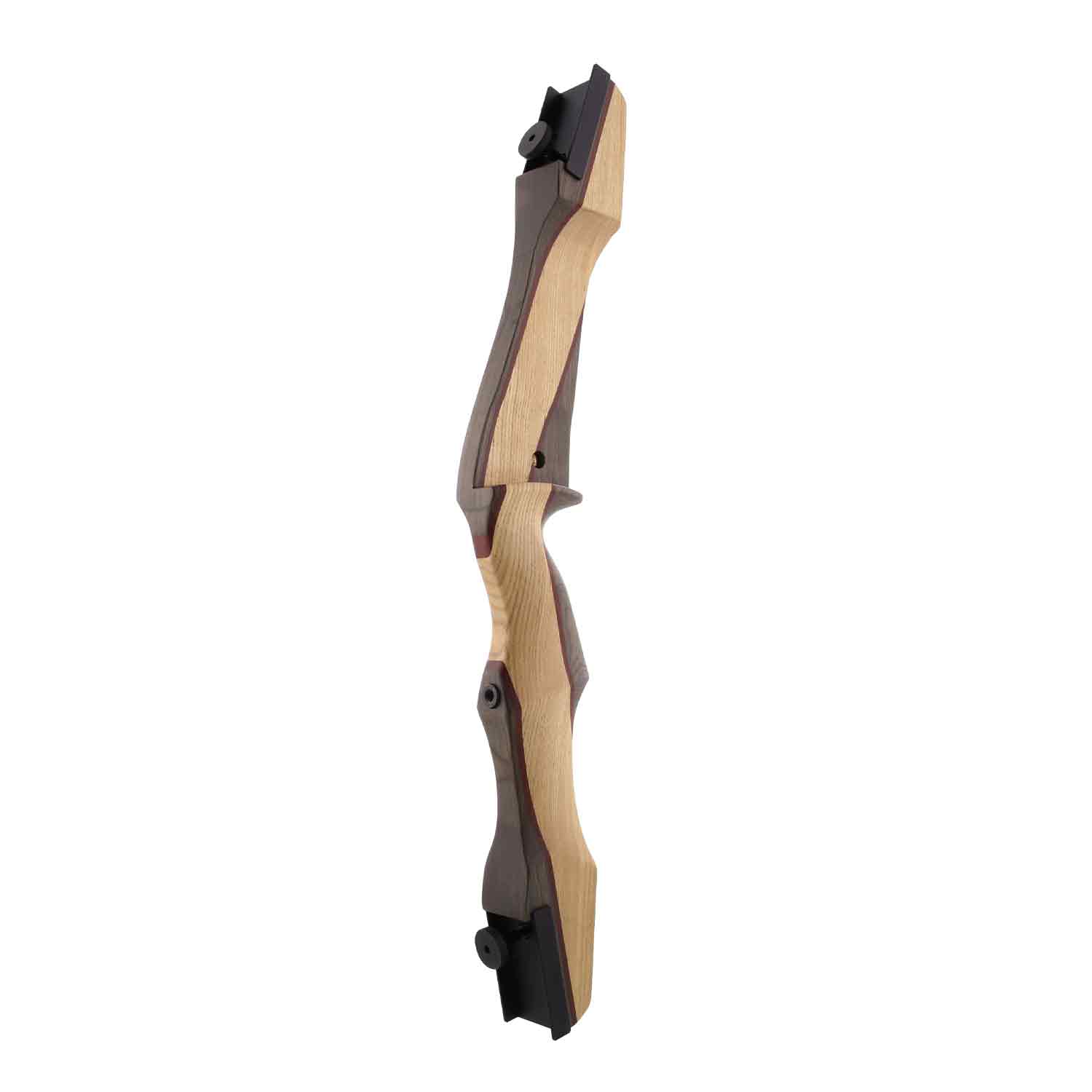 • Riser is cut past center with a crowned arrow shelf, brass plunger, stabilizer and sight/ quiver bushings