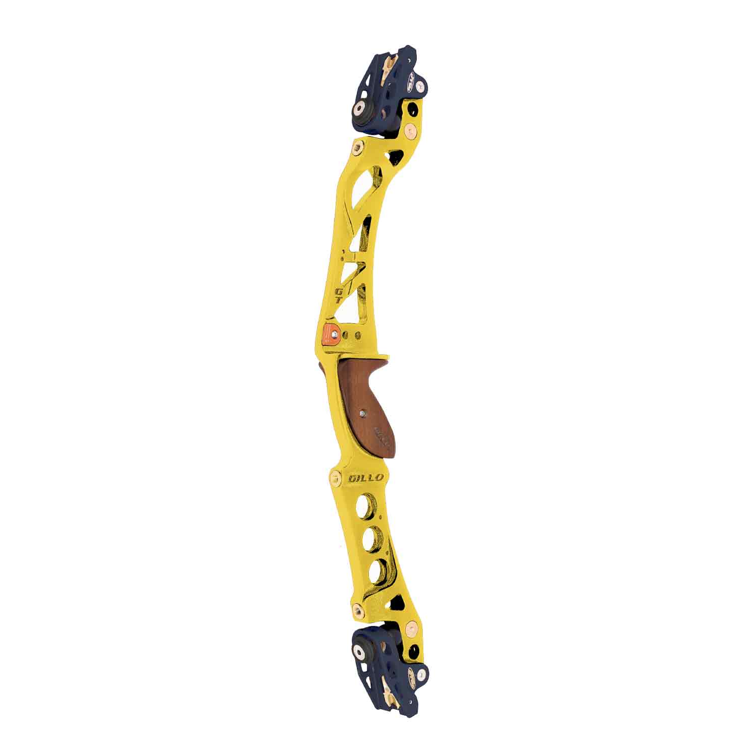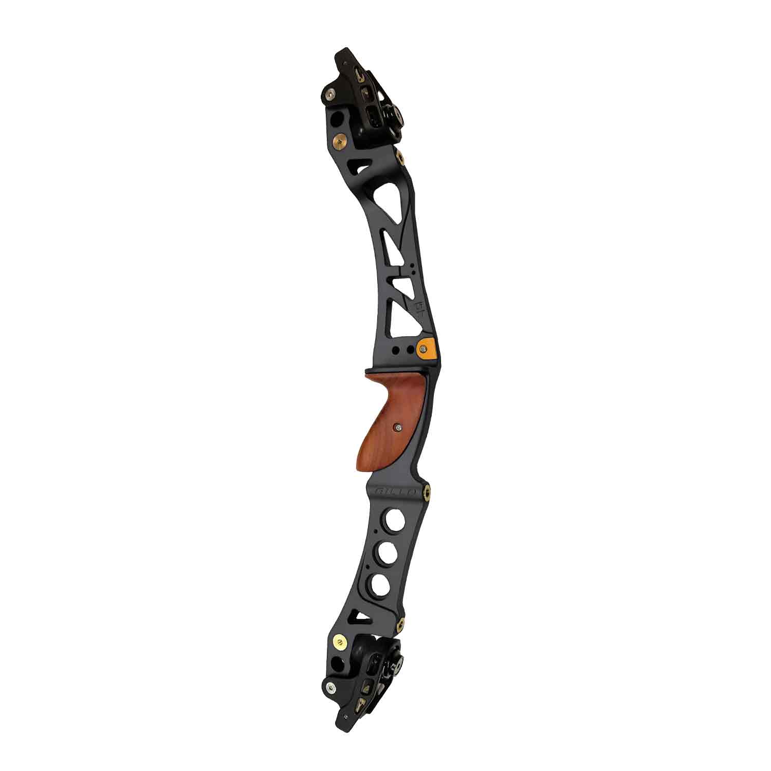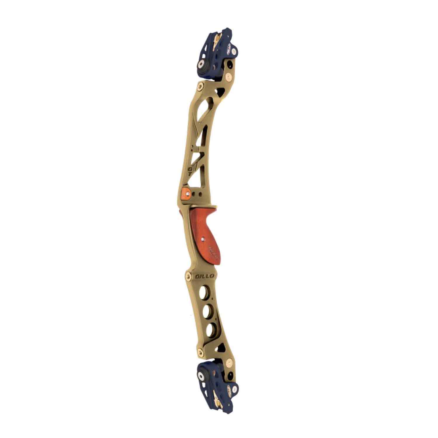 Gillo’s GT25 recurve and barebow riser is still packed with industry-leading ILF technology. Machined from a solid aluminum bar with integrated shock absorbers, four titanium nitride coated stainless-steel stabilizer bushings, and two additional 5/16-UNF tapped holes, the GT25 boasts a floating limb pockets to allow 30% poundage adjustment. The GT25 comes equipped with a carved hard wood grip to ensure stability and reliability in your hand.
