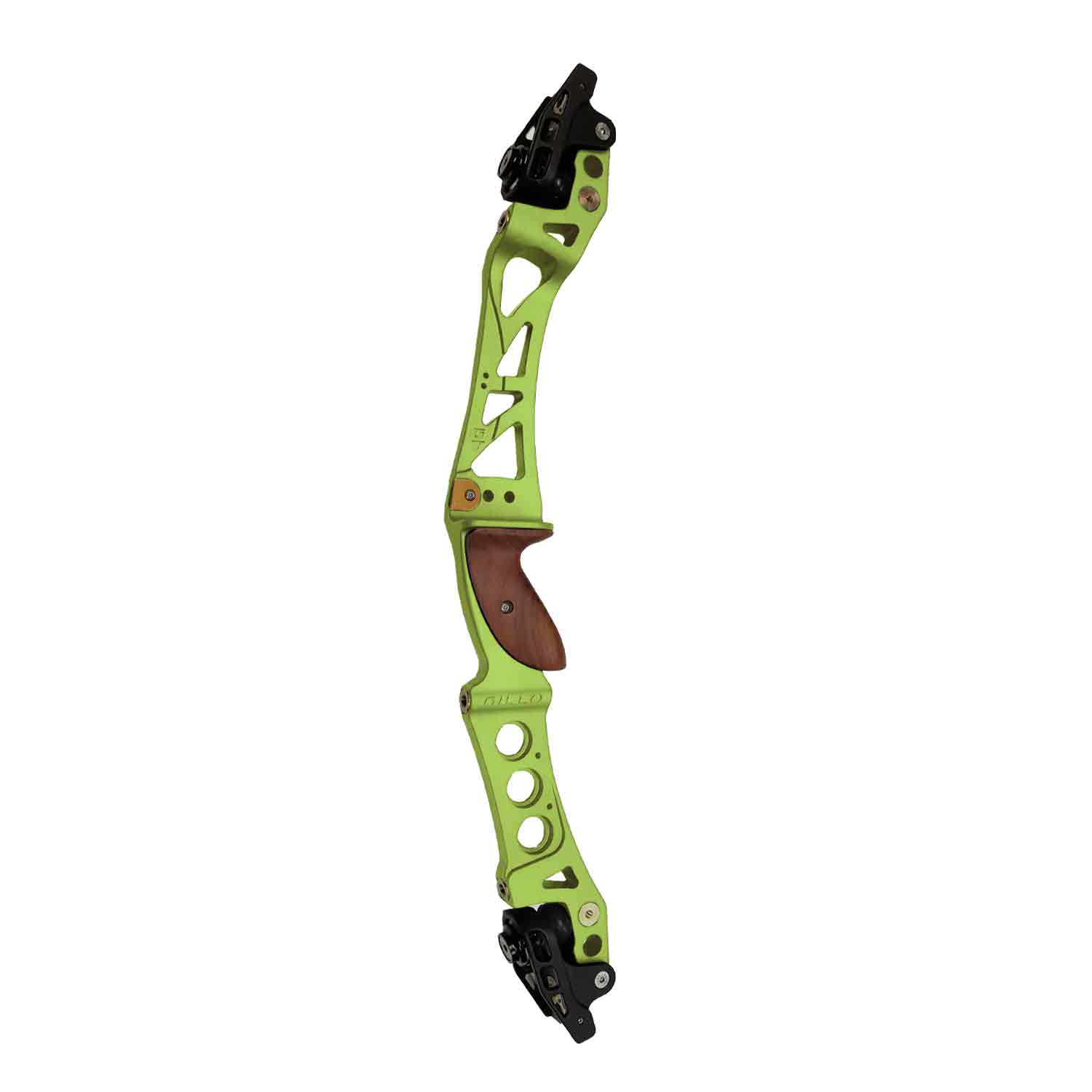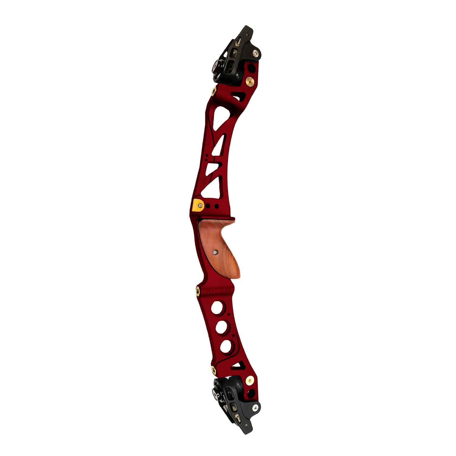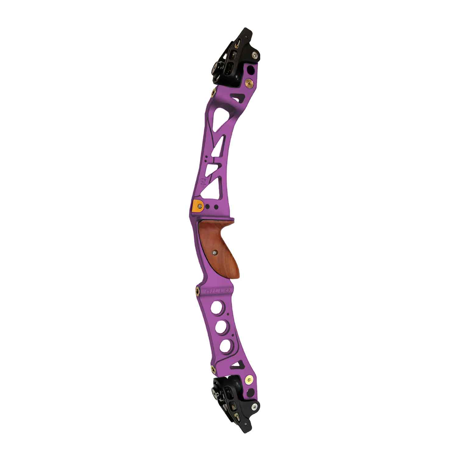 Gillo’s GT25 recurve and barebow riser is still packed with industry-leading ILF technology. Machined from a solid aluminum bar with integrated shock absorbers, four titanium nitride coated stainless-steel stabilizer bushings, and two additional 5/16-UNF tapped holes, the GT25 boasts a floating limb pockets to allow 30% poundage adjustment. The GT25 comes equipped with a carved hard wood grip to ensure stability and reliability in your hand.