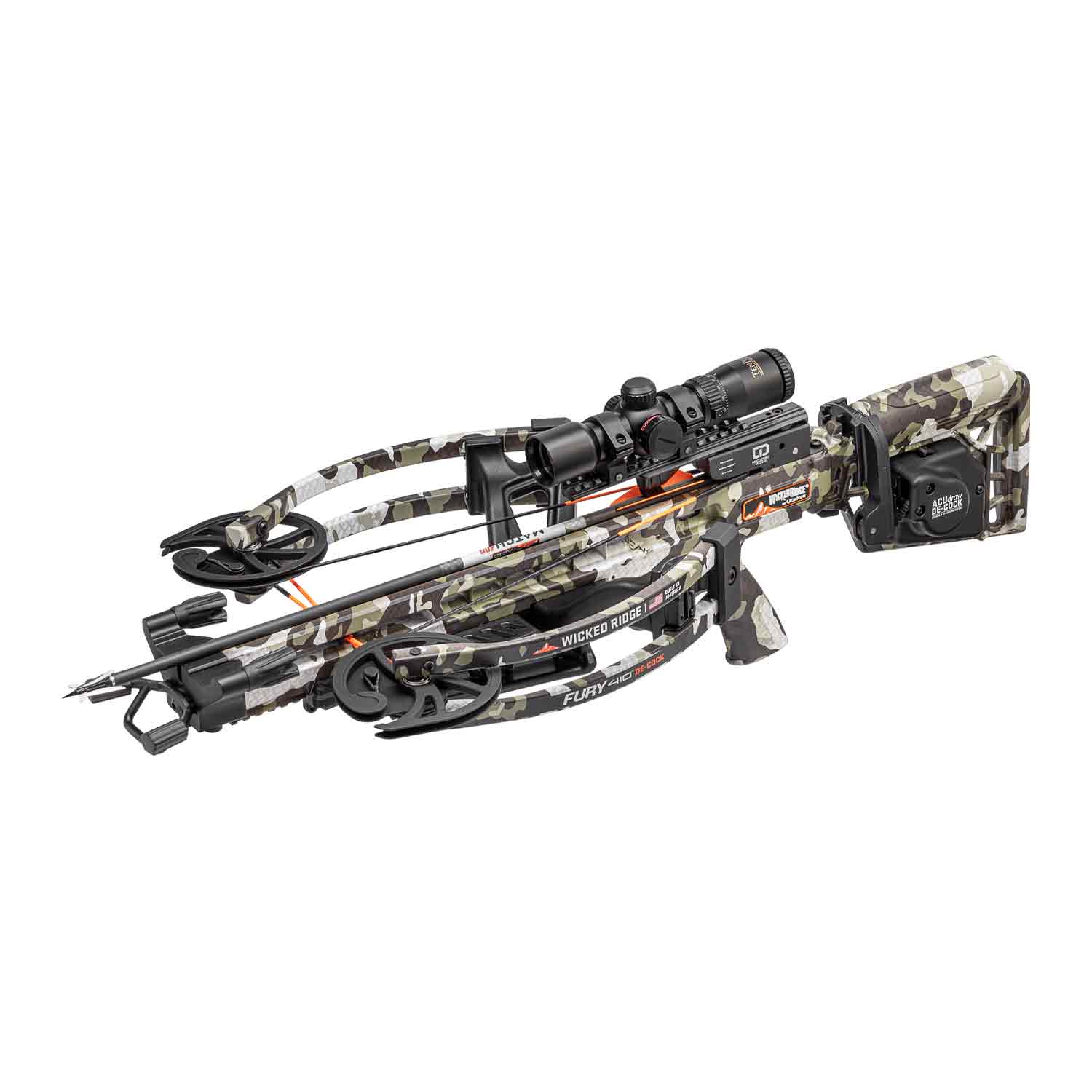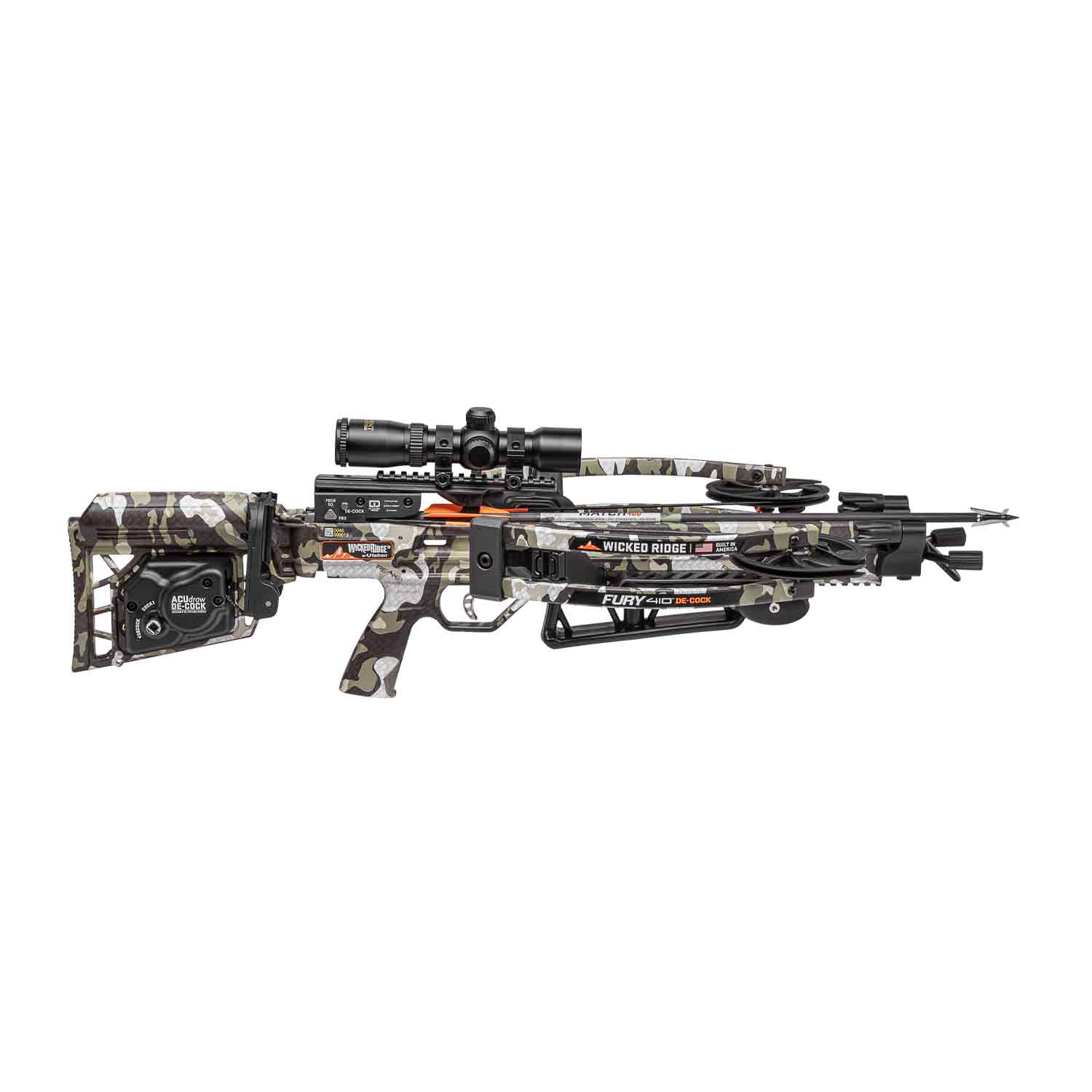 The reverse-draw Fury 410 is the shortest Wicked Ridge crossbow to date and features the safe, revolutionary ACUdraw De-Cock. Perfectly balanced and lightning fast, you cannot beat this package at this price point.