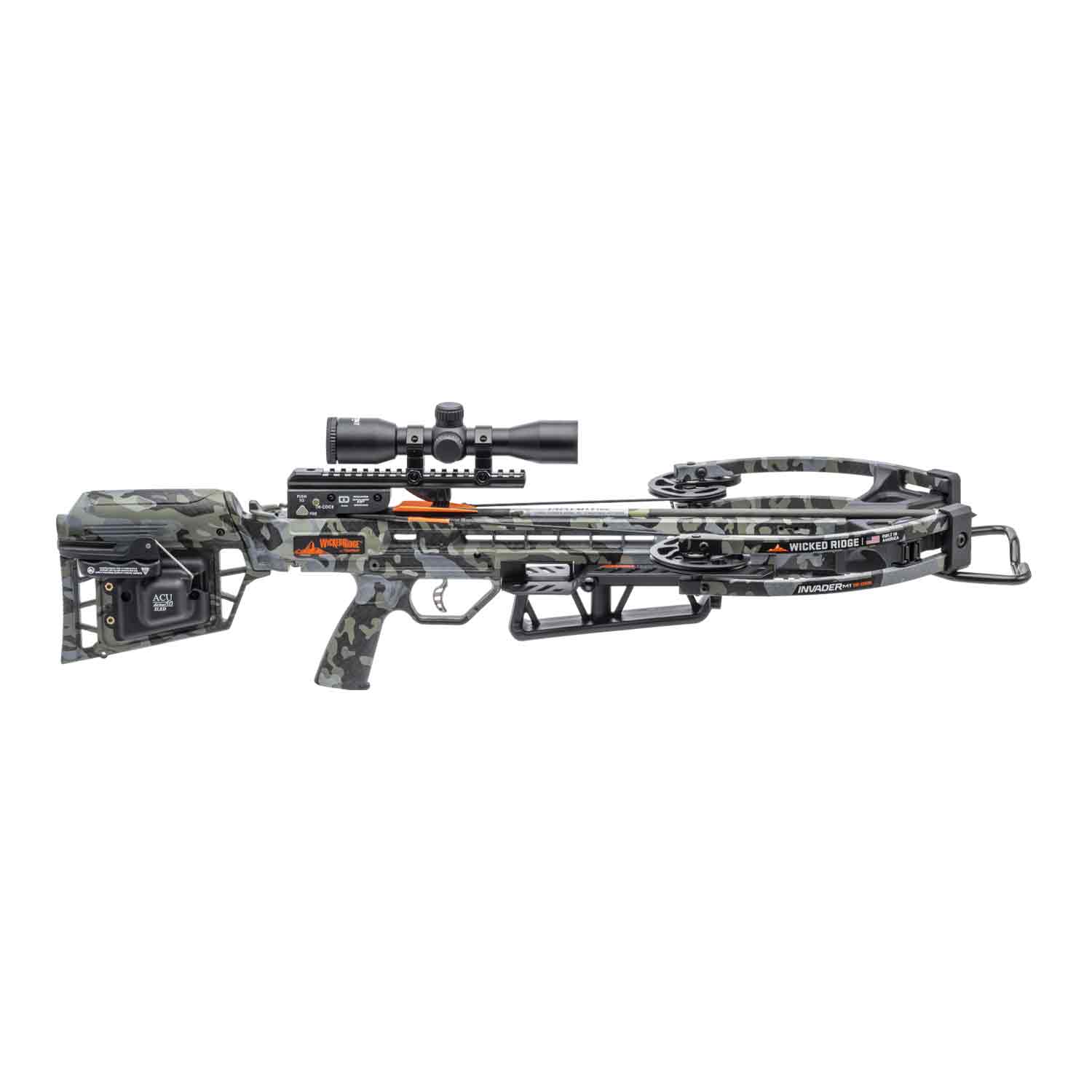 Shooting 390 FPS, the American-Built Invader M1 De-Cock features the ACUdraw De-Cock and brings compact de-cocking to a lower price than ever. Weighing an ultra-light 5.8 lbs. and measuring 9.5” narrow, the Invader M1 De-Cock is equipped a lighted Pro-View™ 400 scope and is built in America to deliver craftsmanship you can depend on. If you don’t take a shot, simply push the de-cock button and manually de-cock the crossbow with the built-in ACUdraw 50 SLED De-Cock. Once you experience the convenience of de-cocking, you’ll never go back to a non-de-cocking crossbow!